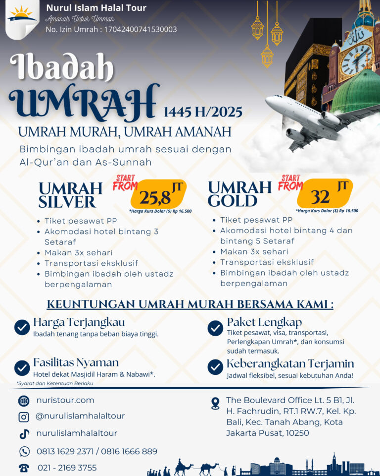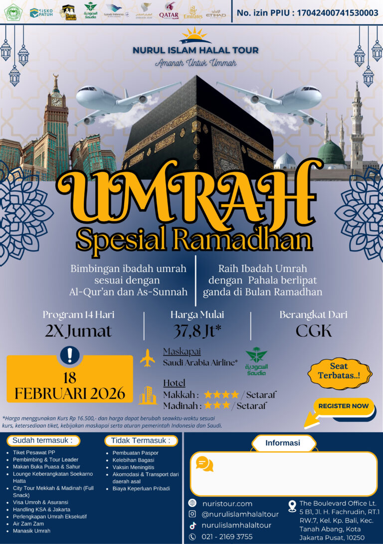 Nurul Islam Halal Tour tidak hanya melayani perjalanan ibadah ke Tanah Suci, tetapi juga menghadirkan pilihan Wisata Halal domestik dan internasional yang sesuai dengan prinsip syariah, sehingga memberikan ketenangan dan kepastian bagi pelanggan.